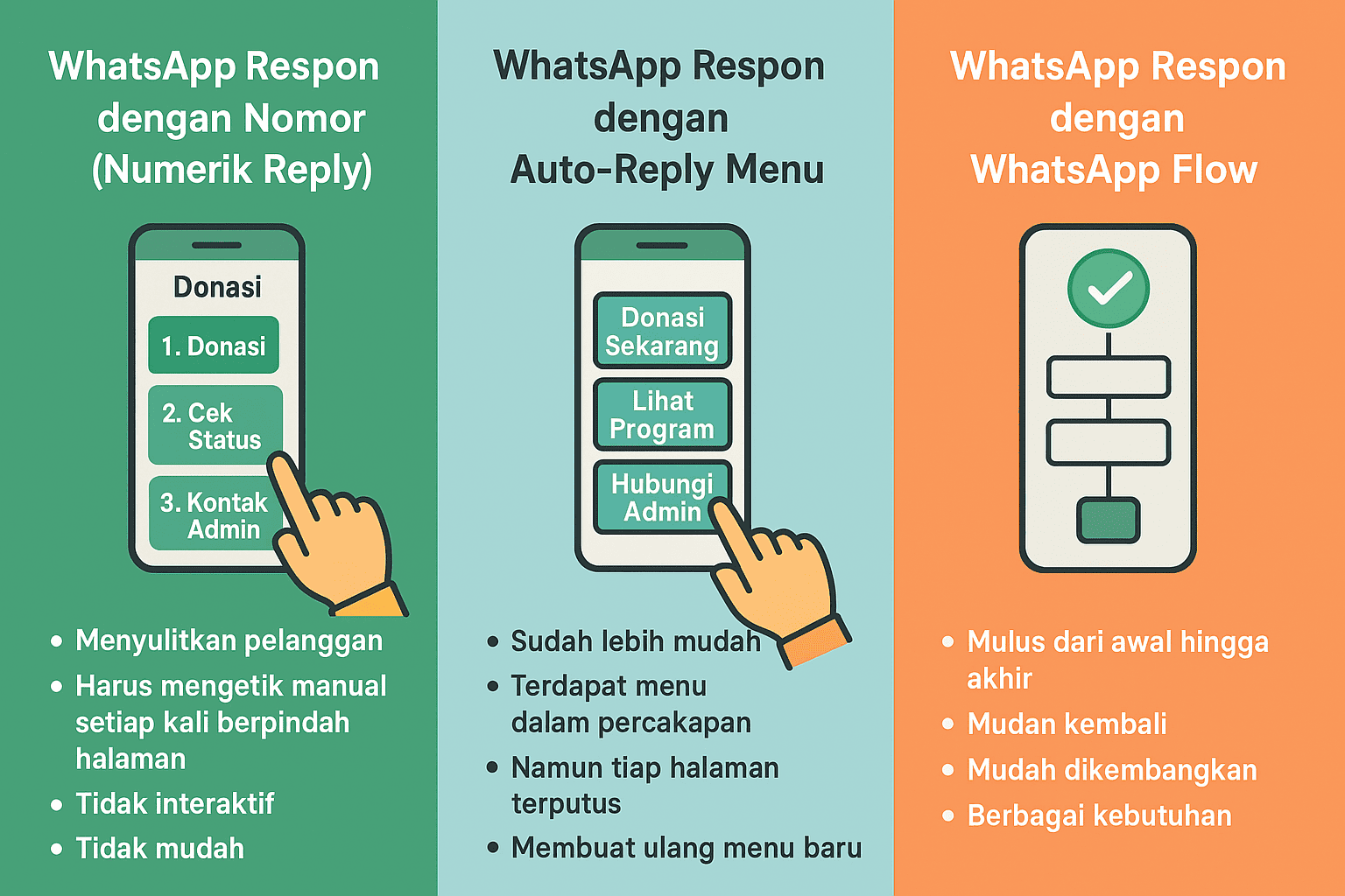 Perbandingan Lengkap: Numerik, Auto-Reply, dan WhatsApp Flow. Mana yang Paling Efektif...
